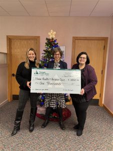 HHHC President and CEO, Barbara LaFrance, met with Lana Dal Molin, Triangle Credit Union VP of Community Outreach & Sales, and Jana Gemelli, Triangle Credit Union Community Outreach & Sales Coordinator, to accept the check and celebrate this exciting win together.